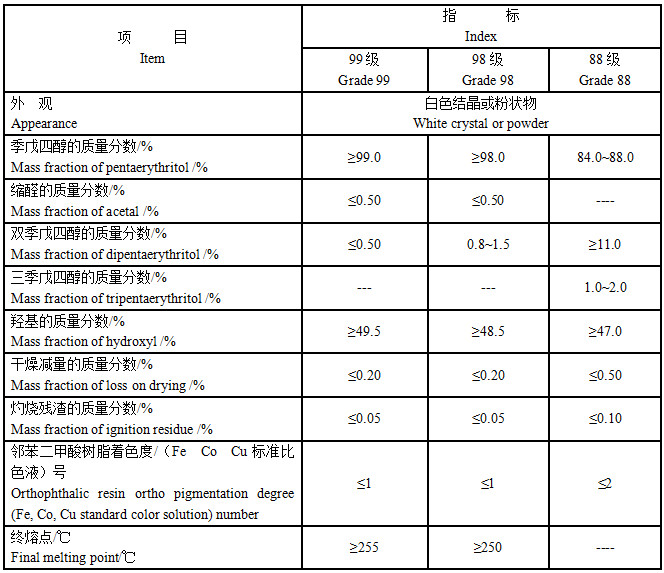 (1)產(chǎn)品用途與工業(yè)用季戊四醇相同外,98級(jí)、88級(jí)特級(jí)品季戊四醇主要應(yīng)用于對(duì)雙季戊四醇和縮醛含量有特殊要求的產(chǎn)品。99級(jí)特級(jí)品季戊四醇主要應(yīng)用于對(duì)單季戊四醇和縮醛含量有特殊要求的產(chǎn)品,如抗氧劑。
