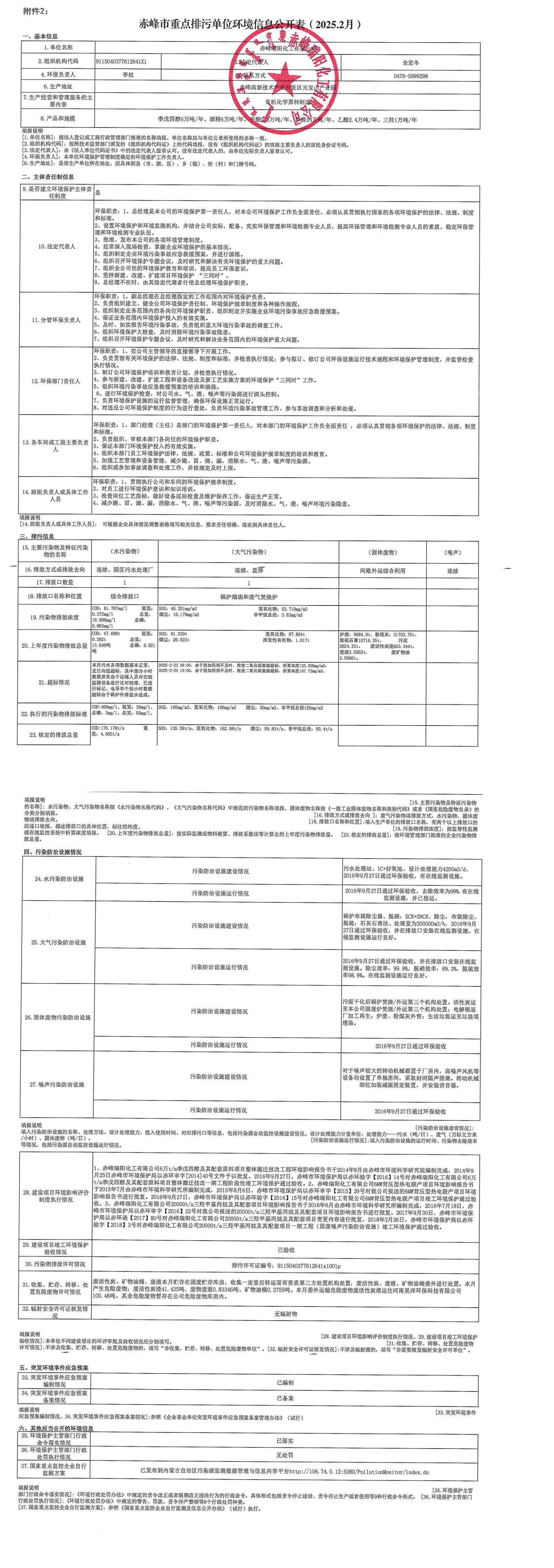赤峰市重點(diǎn)排污單位環(huán)境信息公開(kāi)表【2025.02】