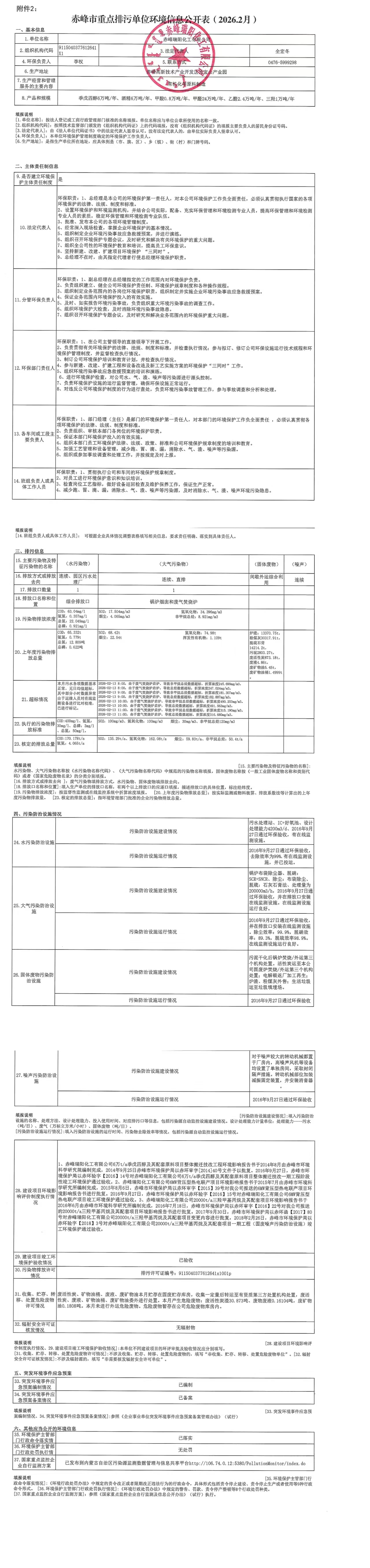 赤峰市重點排污單位環(huán)境信息公開表【2026.02】